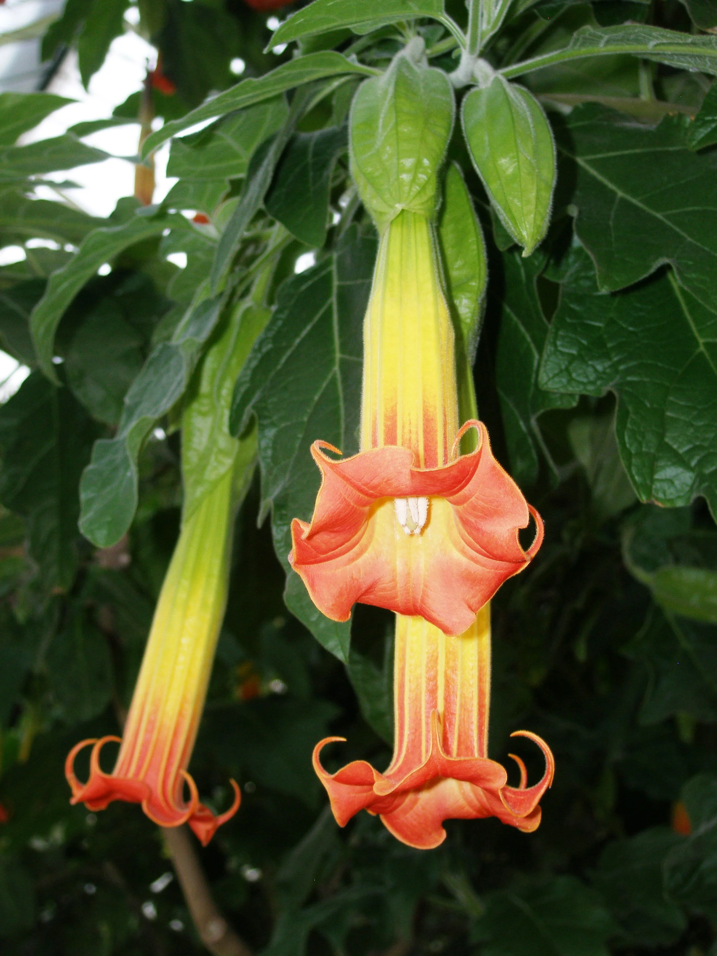 Dryas. (2007). Specimen in cultivation at the Wilhelma Zoologisch-Botanische Garten, Stuttgart, Germany [Photograph]. Wikimedia Commons. https://commons.wikimedia.org/wiki/File:Brugmansia_sanguinea_WZBGSG.JPG